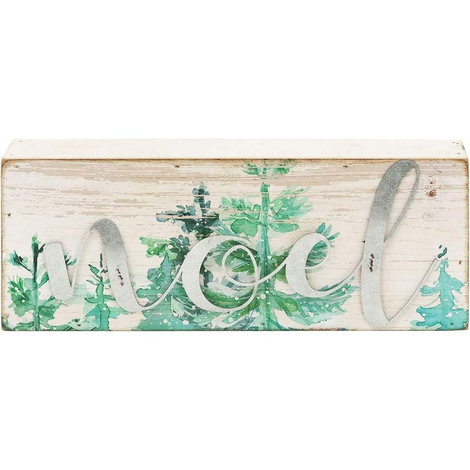 Parisloft ป้ายกล่องไม้คริสต์มาสขนาดเล็กพร้อมตัวอักษรโลหะชุบสังกะสีของตกแต่งบ้านบนโต๊ะในวันหยุดคริสต์มาสแนววินเทจ