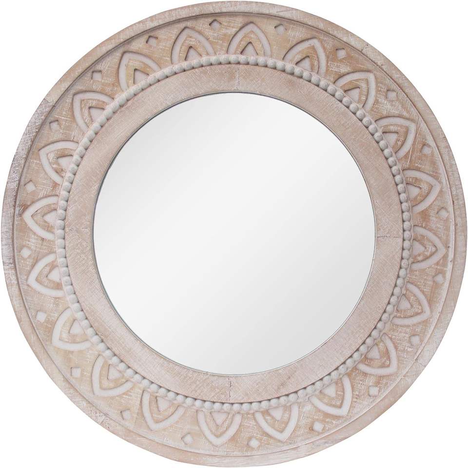 กระจกไม้ทรงกลม Parisloft พร้อมกรอบแกะสลักกระจกติดผนังขนาดใหญ่แบบชนบทกระจกตกแต่งสำหรับตกแต่งผนังห้องนั่งเล่นห้องนอน