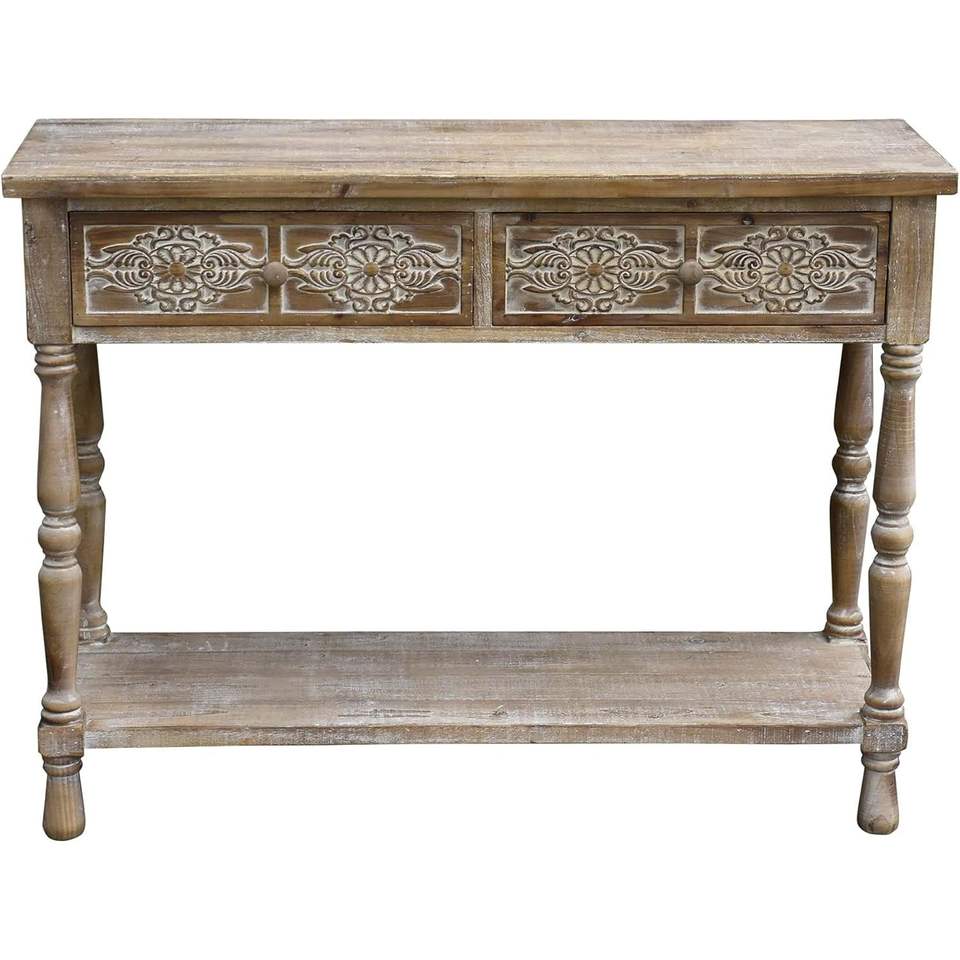 โต๊ะไม้สไตล์วินเทจของ parisloft พร้อมลิ้นชัก2อันและชั้นล่าง1ชั้นวางโต๊ะคอนโซลแบบเรียบง่ายเฟอร์นิเจอร์โต๊ะที่เน้นเสียง
