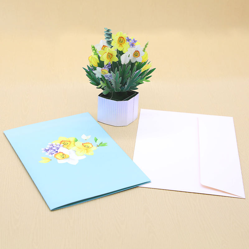 Pav การ์ดแดฟโฟดิลแบบป๊อปอัพ3D ตัดด้วยเลเซอร์หรูหรางานฝีมือหรูหราแบบกำหนดเองสำหรับของขวัญทำจากกระดาษคุณภาพสูง