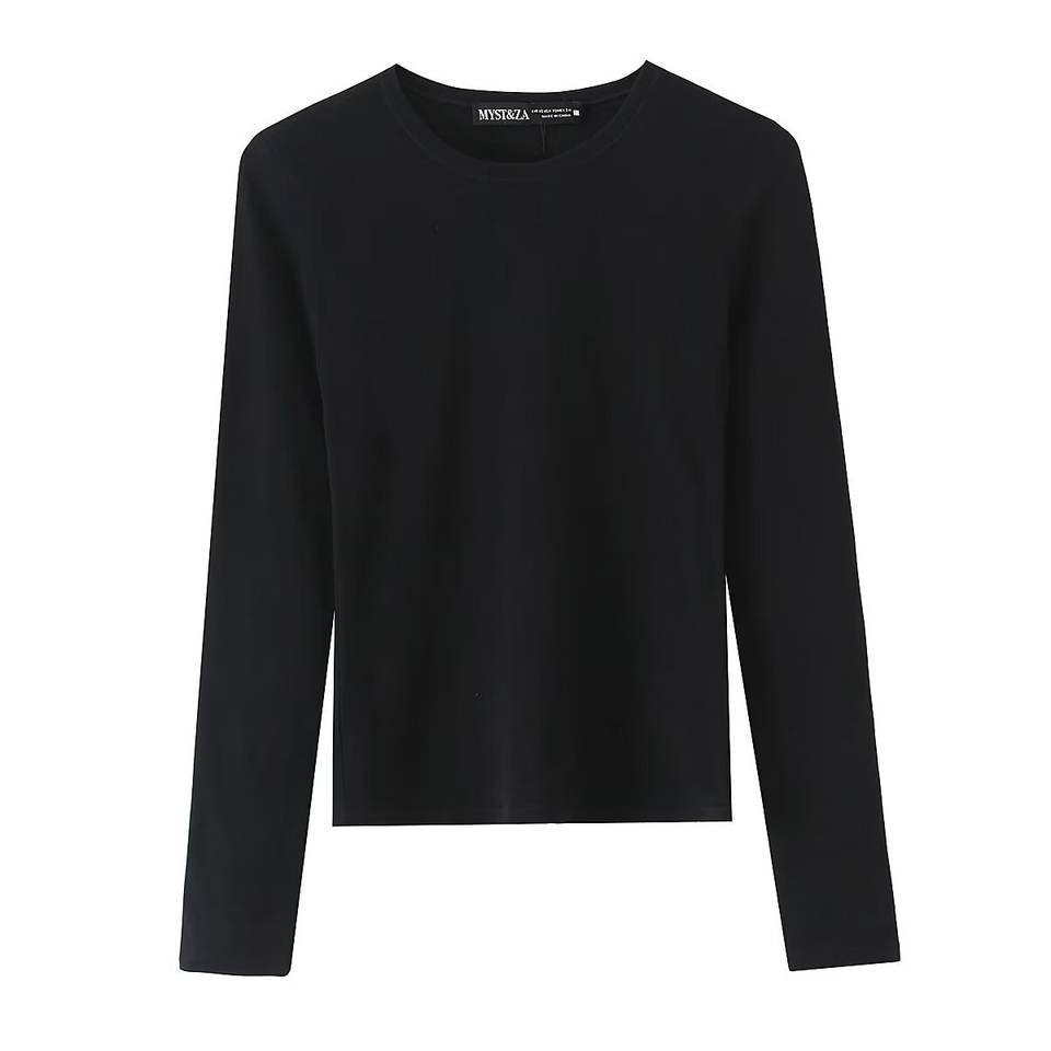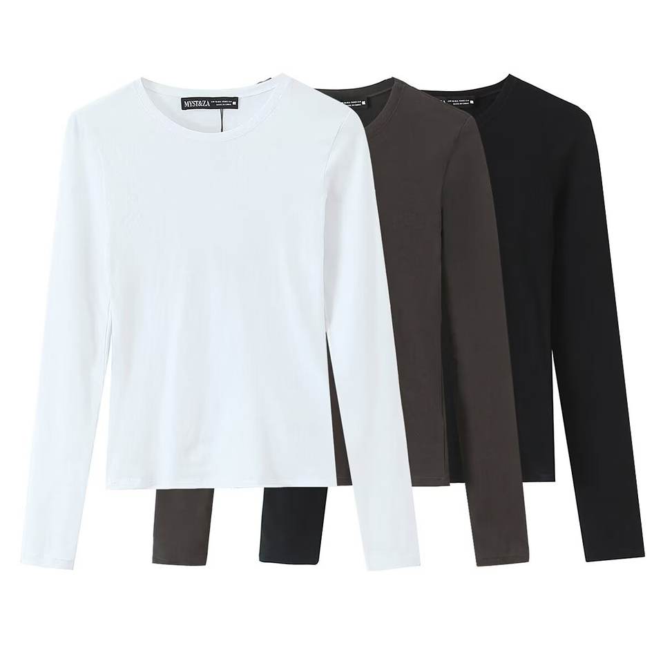 เสื้อยืดแขนยาวทรงเข้ารูปคอกลมสามสีสไตล์มินิมอลสำหรับผู้หญิง PB&ZA คอลเลคชั่นใหม่ ฤดูใบไม้ผลิ 2026