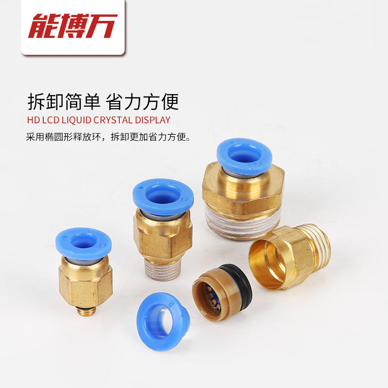 ข้อต่อทองแดงเกลียวนอกแบบตรงสำหรับเชื่อมต่ออย่างรวดเร็ว รุ่น PC8-02 สำหรับอุปกรณ์นิวเมติกส์ รุ่น PC10-03/12-04