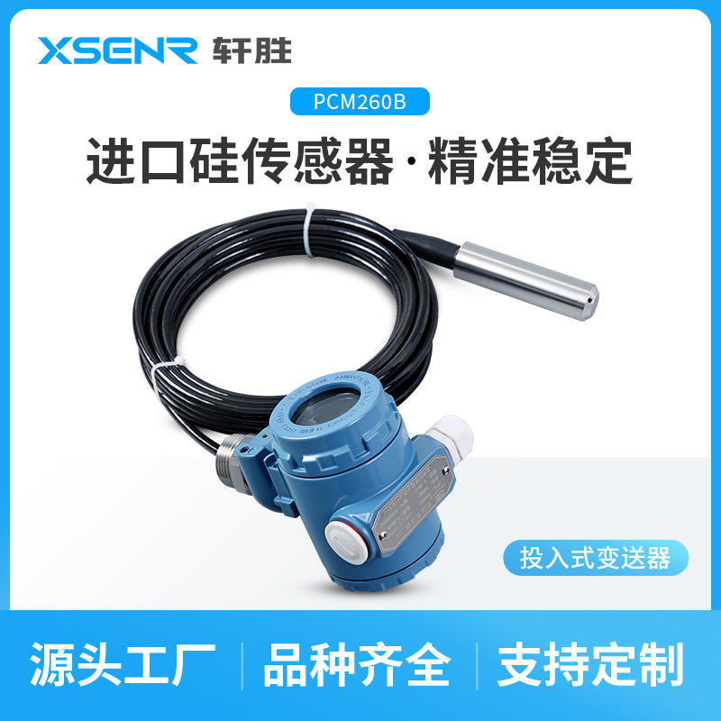 PCM260B เครื่องส่งสัญญาณระดับน้ำแบบจุ่มใต้น้ำ 0-1100M คอลัมน์น้ำ 4-20mA เซ็นเซอร์แสดงผลแบบดิจิตอลสำหรับการวัดระดับของเหลว