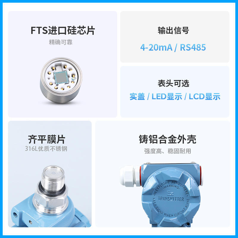 PCM450ทรานสมิตเตอร์ความดันอุตสาหกรรม4-20mA จอแสดงผล LCD เซ็นเซอร์ซิลิกอน CT6 Exia IP65อลูมิเนียมอัลลอย
