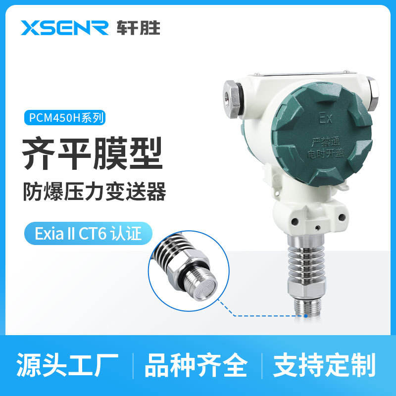 PCM450H เครื่องส่งสัญญาณความดันไดอะแฟรมแบบแบนสำหรับอุตสาหกรรม 4-20mA Exia CT6 IP65 โลหะ พลาสติก ซิลิคอนแบบกระจาย
