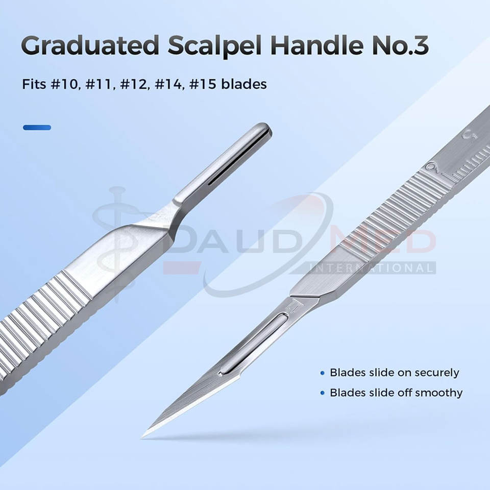 ด้ามจับมีดผ่าตัดแบบแมนนวล PCS เบอร์ 3 สแตนเลส สำหรับใบมีดเดอร์มาเพลน เบอร์ 10 10R 11 12 13 14 15 15A และ 15C (ใช้ครั้งเดียว)
