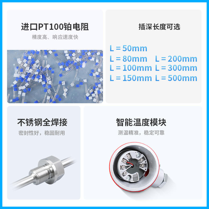 เครื่องส่งสัญญาณอุณหภูมิแบบรวม PCT200 เซ็นเซอร์ Pt100 ช่วงการส่งสัญญาณ 4-20mA ช่วงอุณหภูมิ -200 ถึง 400 องศาเซลเซียส ความแม่นยำระดับ 0.5