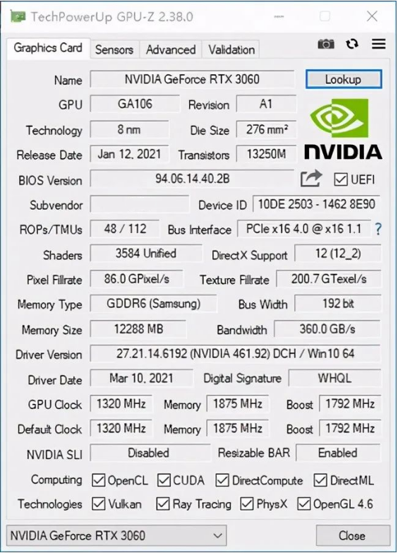 เลือกเลยGPU รุ่น: Geforce RTX3060