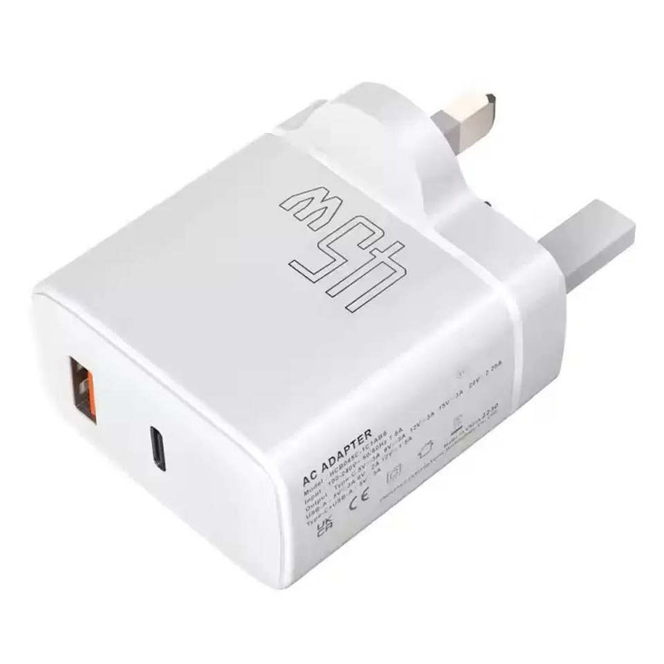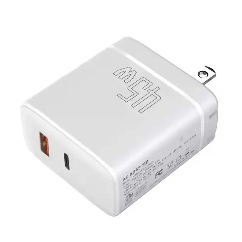 อะแดปเตอร์ชาร์จเร็ว PD 45W แบบ USB-C พร้อมพอร์ต USB-A/USB-C คู่ หัวปลั๊กแบบ US/EU/UK สำหรับใช้ในบ้านและสำนักงาน