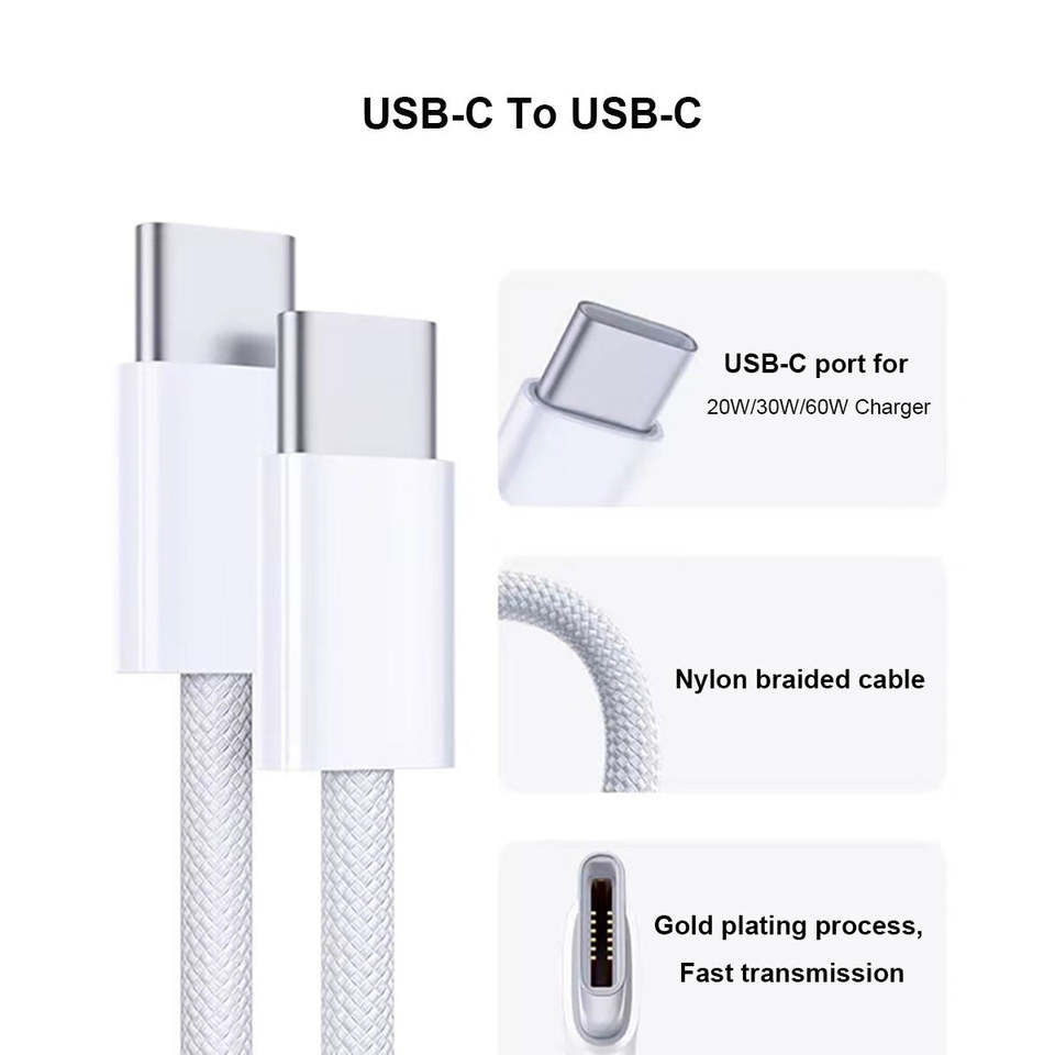 PD 60W Fast Charging USB C to USB C Cable 1m/2m Nylon Braided Data Cord for MacBook/iPhone 17 16 15/Samsung OEM/ODM Wholesale