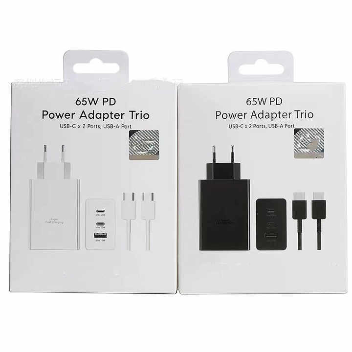 PD 65W 3-Port Usb C Super Fast Charger Original EP-T6530 Type-C PD Power Adapter Trio for Samsung Galaxy S22 S23 Ultra