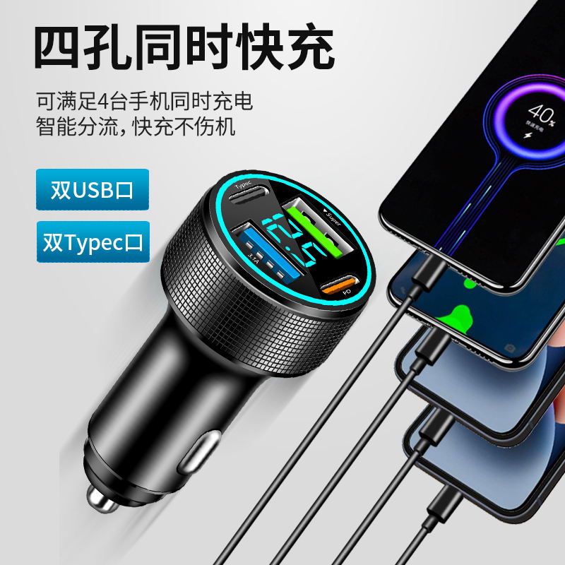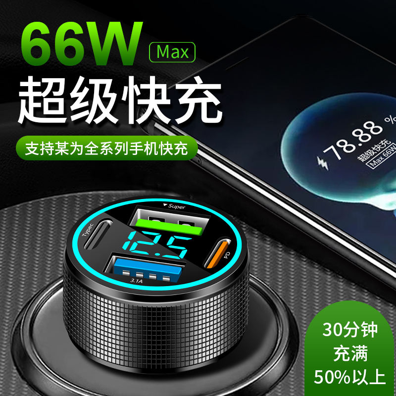 PD ที่ชาร์จในรถ66W ชาร์จเร็ว4พอร์ต USB อะแดปเตอร์โทรศัพท์ในรถประเภท C ที่ชาร์จในรถสำหรับ iPhone 15 14 13 PRO MAX สำหรับ Samsung S25