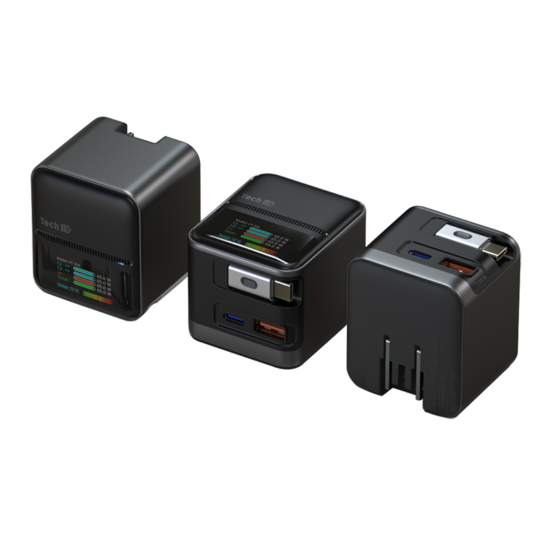 อะแดปเตอร์ GaN 3 พอร์ต USB 65W ชาร์จเร็ว สำหรับโทรศัพท์มือถือ ชาร์จไฟแบบเร็ว พร้อมสายชาร์จแบบยืดหดได้