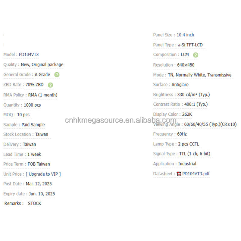 หน้าจออุตสาหกรรม PD104VT3H1 ของแท้ใหม่เอี่ยม โมดูลจอแสดงผล LCM PD104VT3H1