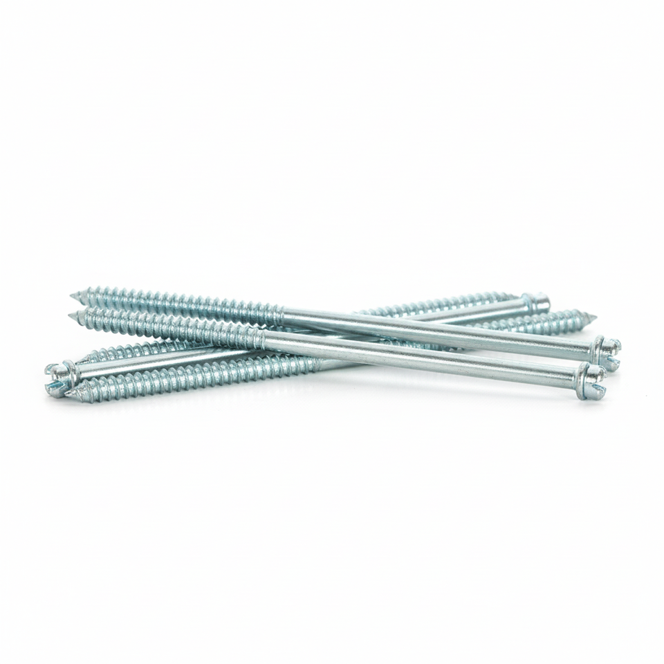 สกรูไม้ปลายสองด้าน PDC แบบเมตริก/นิ้ว ขนาด M6-M12 หัวแฉก เกลียวบางส่วน ระดับ 4.8 6.8 เหล็กกล้าคาร์บอนชุบสังกะสี DIN