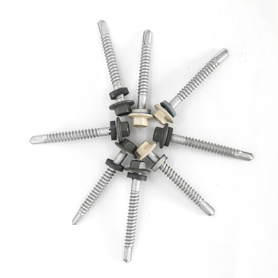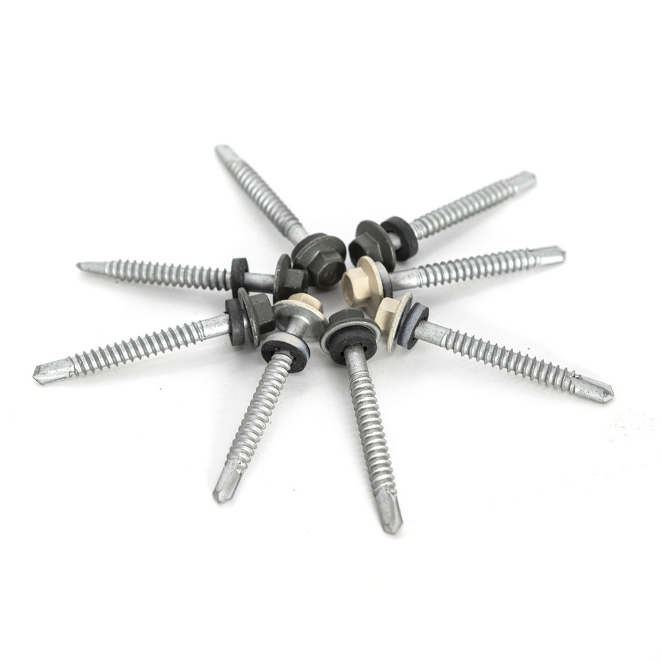 สกรูเจาะยึดหัวหกเหลี่ยม PDC รุ่น 12 เหล็กกล้าคาร์บอน คลาส 4.8 และ 6.8 ชุบสังกะสี/ชุบกัลวาไนซ์ เกลียวหยาบ พร้อมแหวนรอง EPDM