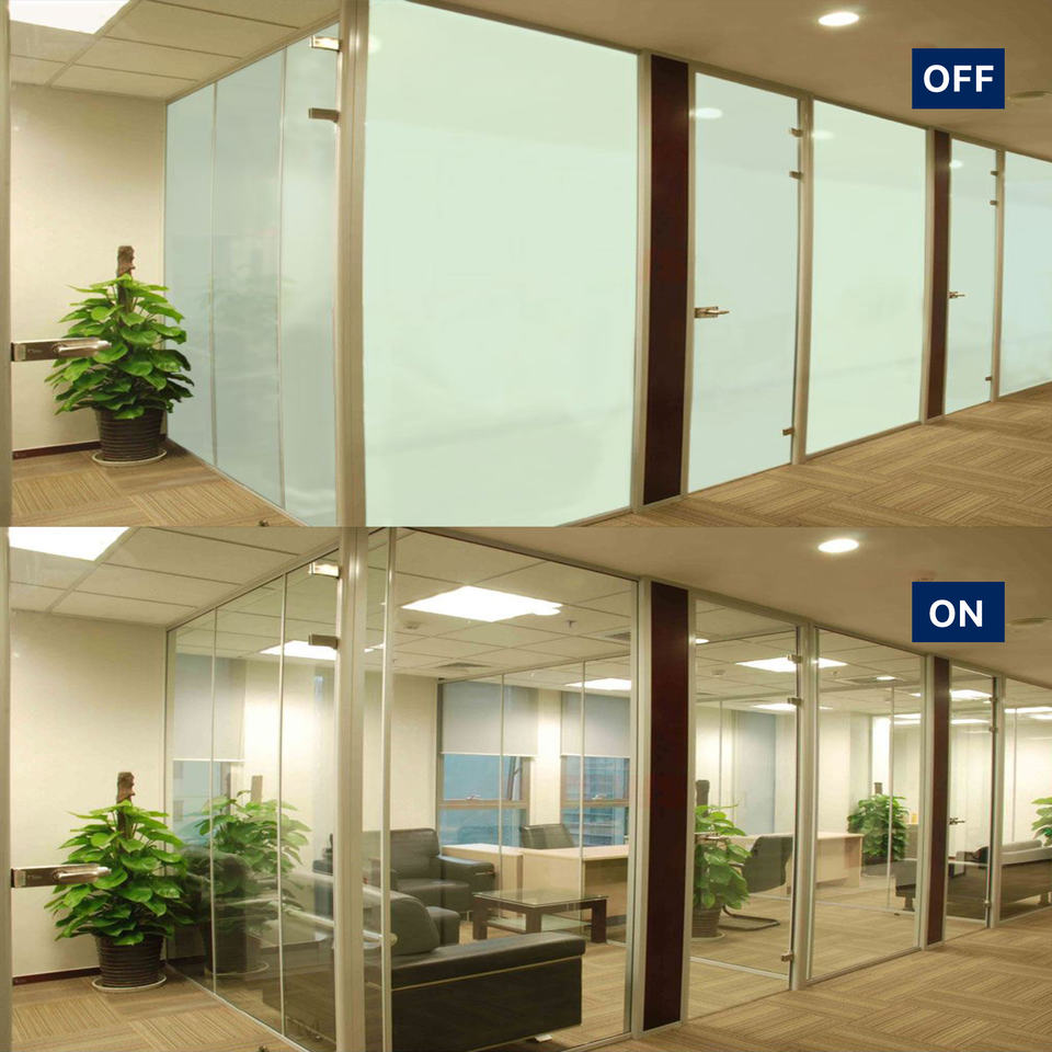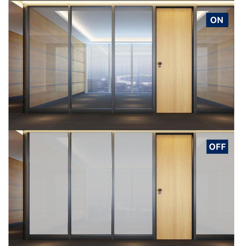 ฟิล์มกระจก PDLC แบบเปลี่ยนสีได้ ฟิล์มกระจกอัจฉริยะโปร่งแสงสูง ฟิล์ม PDLC ปรับความเป็นส่วนตัวและลดแสง สำหรับฉากกั้นอาคาร