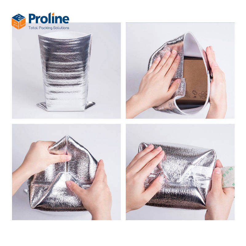 ถุงเก็บความเย็นแบบพับได้ PE EPE ฉนวนโฟมแบบใช้แล้วทิ้ง เป็นมิตรกับสิ่งแวดล้อม กันน้ำ เก็บความสดใหม่ พกพาสะดวก ปิดด้วยซิป สำหรับใส่อาหารกลับบ้าน