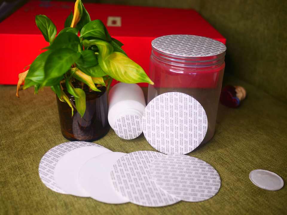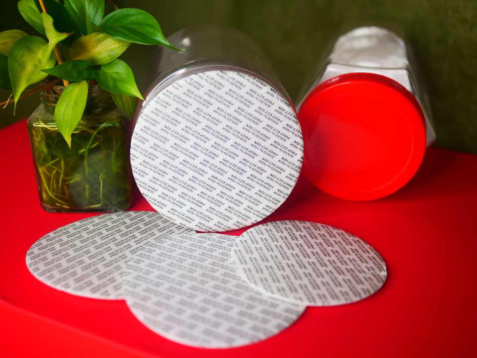 แผ่นซีลยางสำหรับขวดแก้ว PE ขนาด 36/45/64/70 มม. ฝาเกลียวแบบปิดผนึกกันรั่วซึม แบบใช้แล้วทิ้ง สำหรับอาหาร