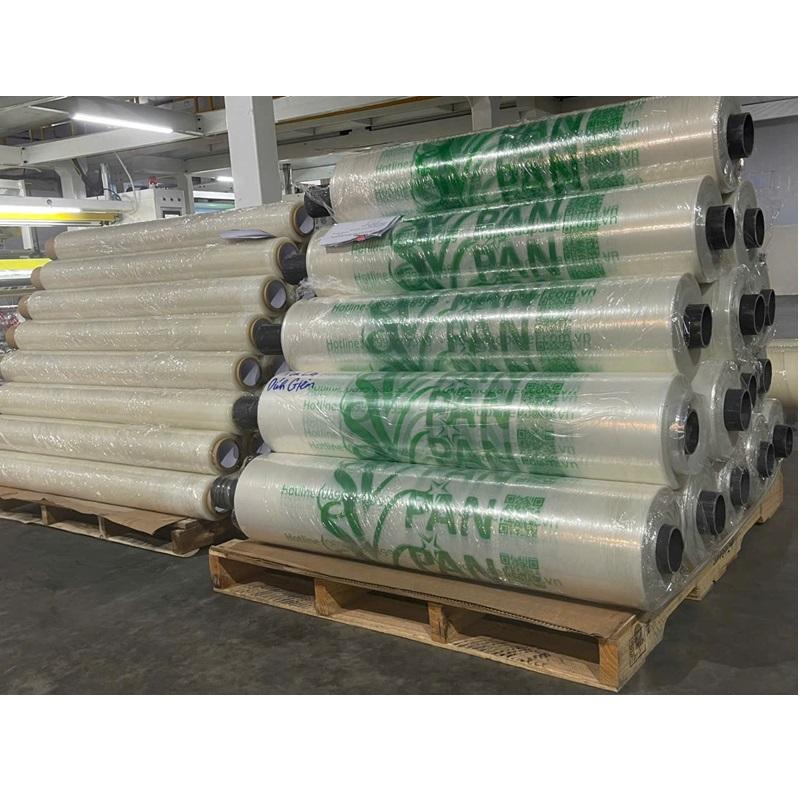 แผ่นฟิล์มพลาสติก PE แบบนิ่มแผ่นเหล็กลูกฟูกความยาว1000เมตรพื้นผิวป้องกันแบบเรียบใช้ในซูเปอร์มาร์เก็ตออกแบบโลโก้ได้ตามต้องการ