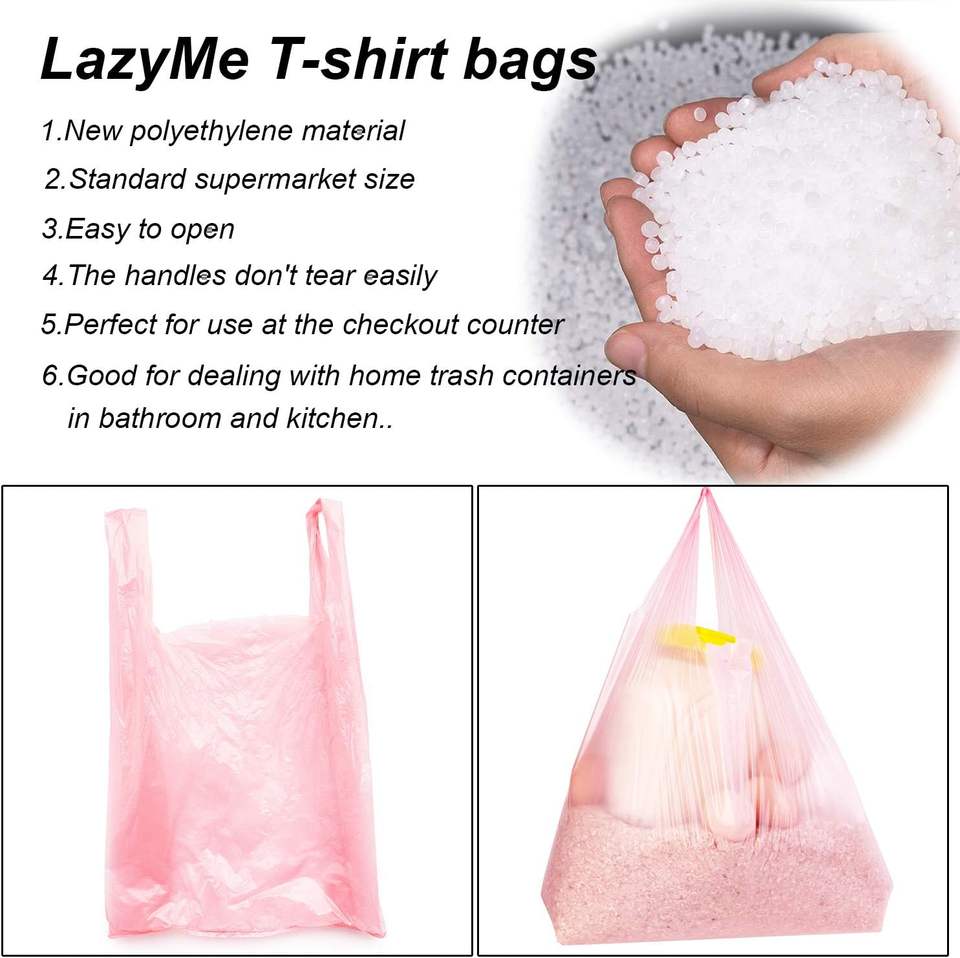 ถุงช้อปปิ้งพลาสติก PE พร้อมหูหิ้ว รีไซเคิลได้ ใช้แล้วทิ้งได้ ปรับแต่งโลโก้/ดีไซน์ได้ สำหรับธุรกิจค้าปลีกของชำ