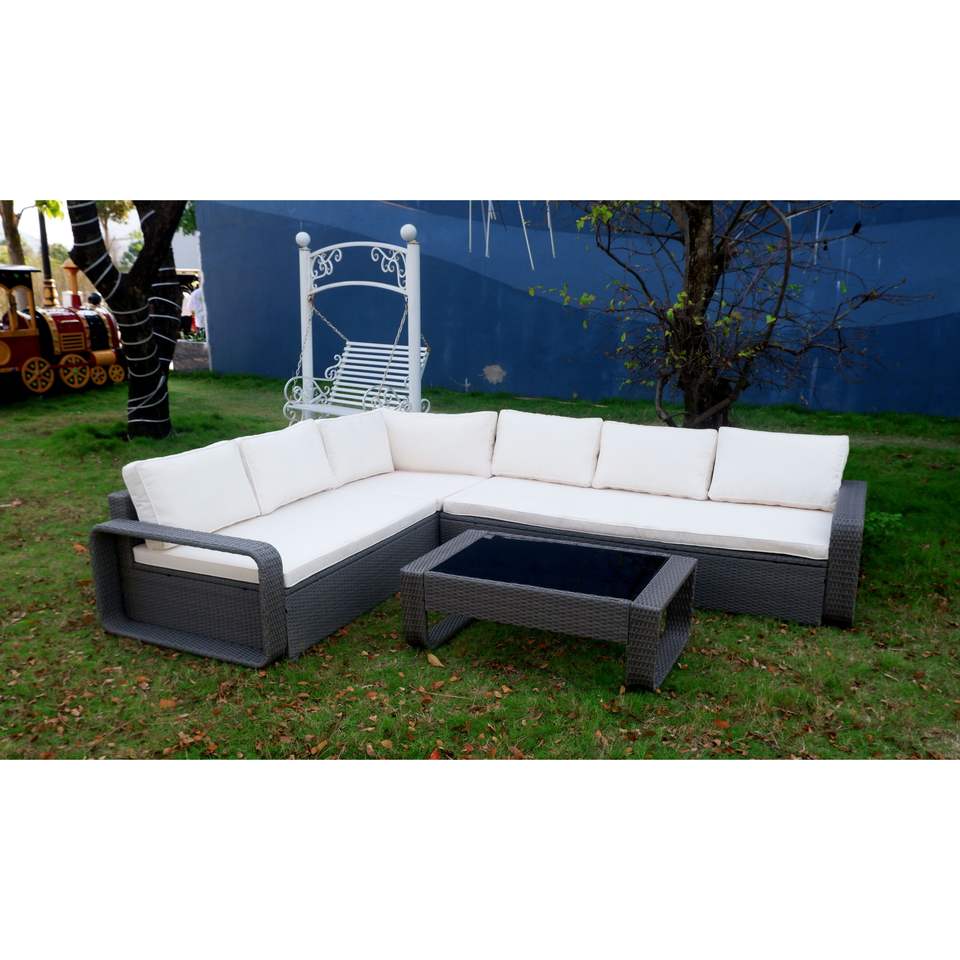 ชุดเฟอร์นิเจอร์หวายรูปตัวแอลสำหรับสวนกลางแจ้งพร้อมเบาะและโต๊ะกาแฟสำหรับใช้ในสวนและลานบ้าน