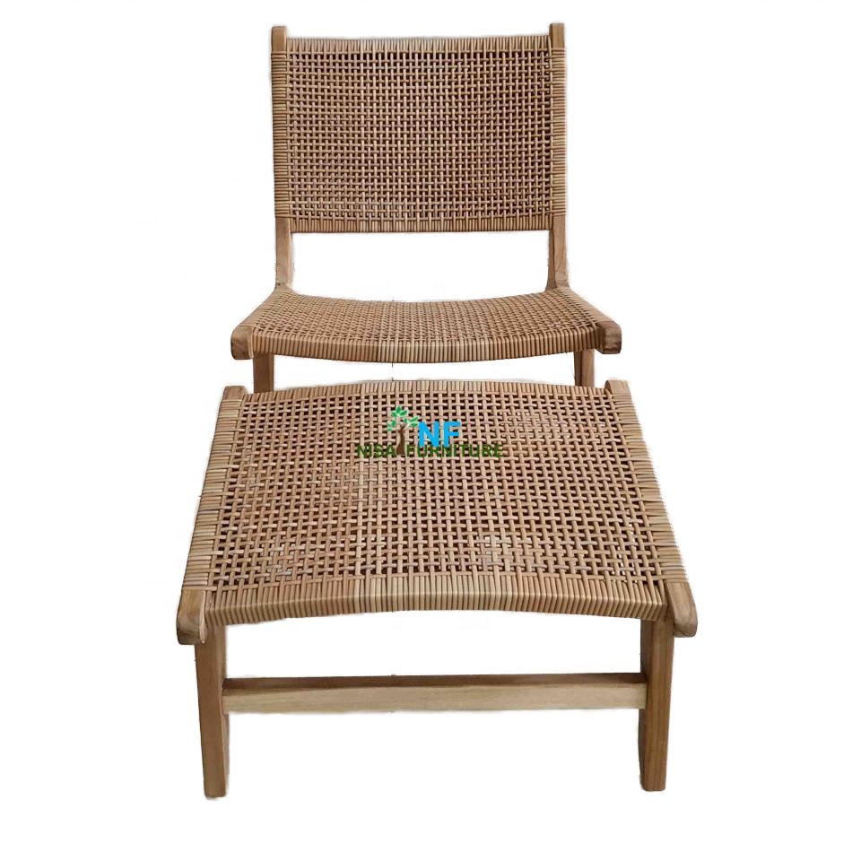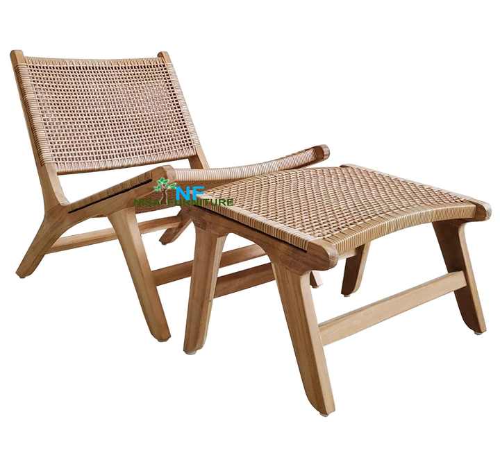 เก้าอี้หวาย PE แบบโมเดิร์นทำจากไม้สักแข็งเก้าอี้พักผ่อนในสวนกลางแจ้งเฟอร์นิเจอร์สำหรับสวน
