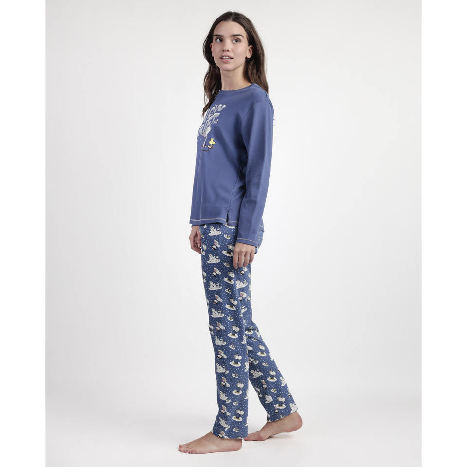 ชุดนอนฤดูหนาวสุดหรู PEANUTS แขนยาว เอวยางยืด ลายหิมะตก ปิดด้วยกระดุม สามารถปรับแต่งโลโก้ได้ สำหรับผู้หญิง