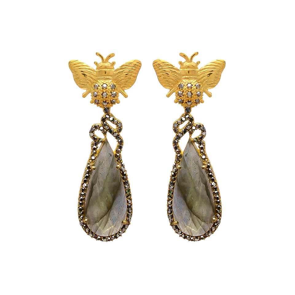 ลูกแพร์รูปร่าง LABRADORITE สีดำรุ้งพลอย925ต่างหูเงิน