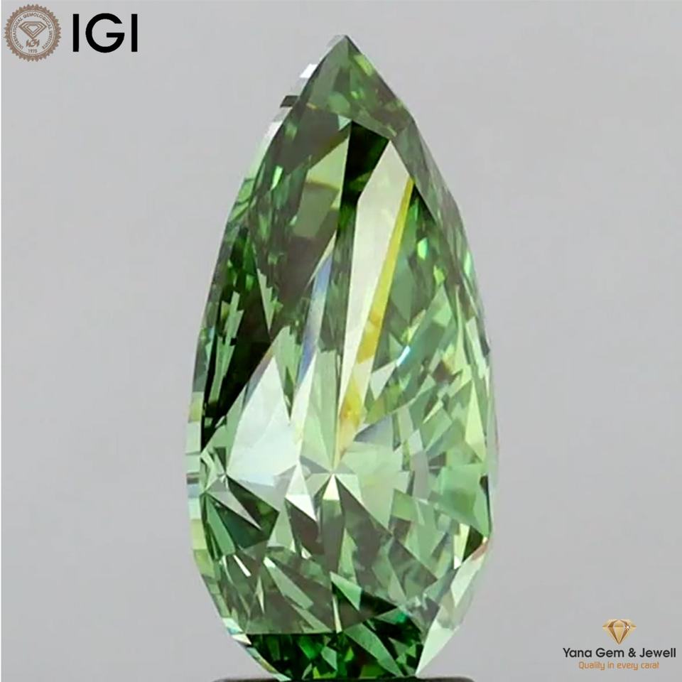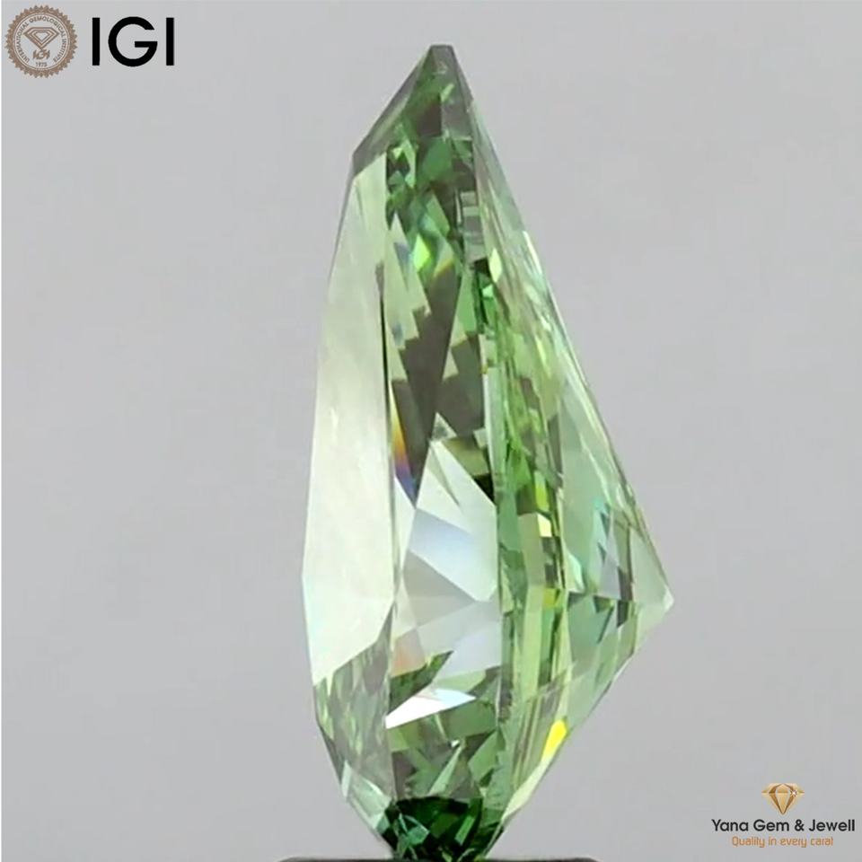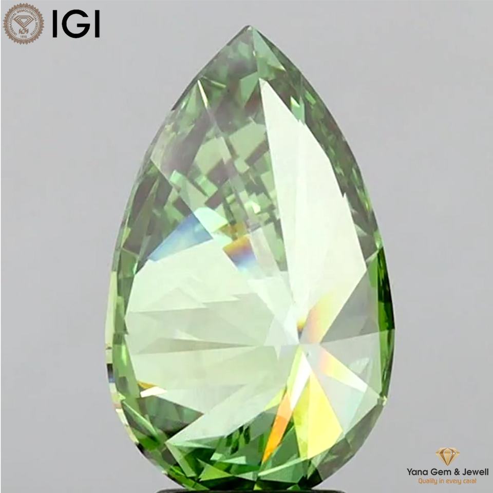 เพชรทรงลูกแพร์ CVD ผลิตในห้องปฏิบัติการ 4.00 กะรัต สีเขียวสดใสแฟนซี ความสะอาดระดับ VVS2 พร้อมใบรับรอง IGI สำหรับเครื่องประดับชั้นดี