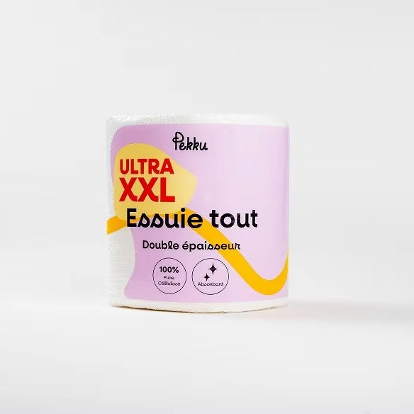 Pekku ผ้าขนหนูกระดาษสีขาวม้วนเดี่ยวขนาดใหญ่แห้งเปียกนุ่มใช้ในครัวเรือนออกแบบโลโก้ได้ตามต้องการ