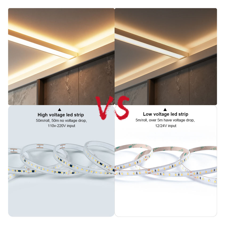 ไฟ LED แบบยืดหยุ่น คุณภาพสูง กันน้ำระดับ IP20 แรงดันไฟฟ้าสูง AC220-240V ชิป SMD2835 สีเดียว 120/144 หลอด/เมตร 50 เมตร/ม้วน