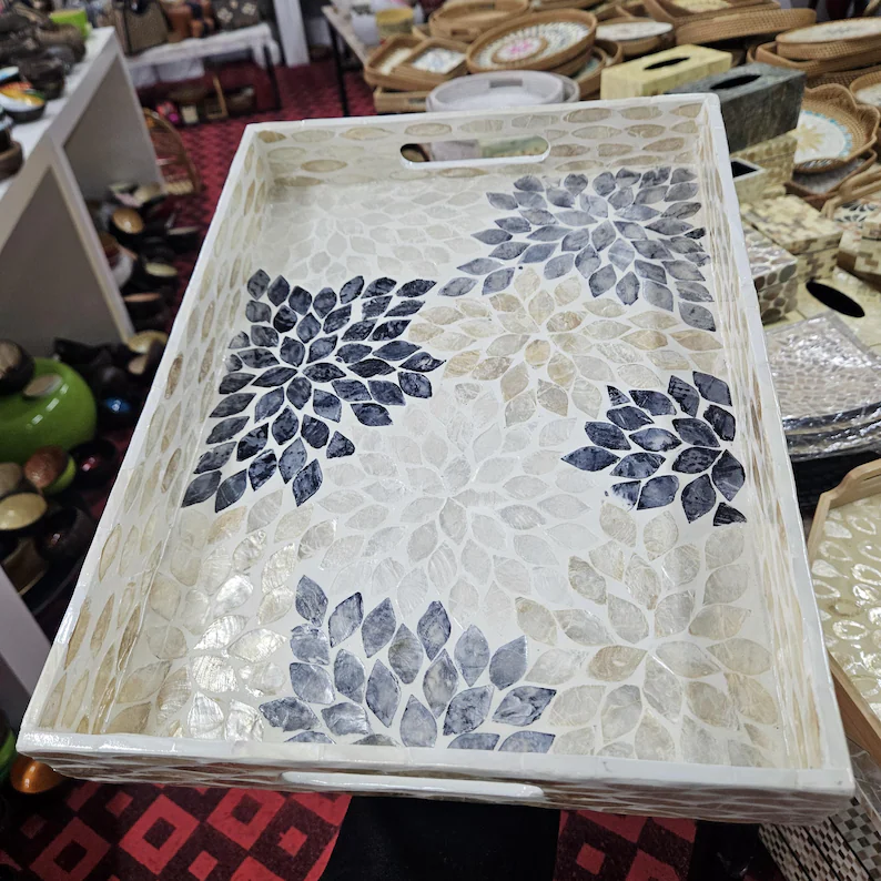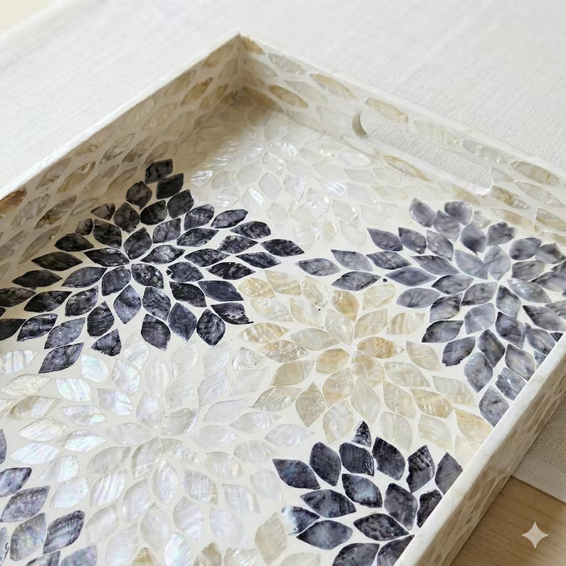 ถาดฝังมุกทำมือจาก PERFECT ENTERPRISES | ถาดเสิร์ฟโมเสคเปลือกหอยหลากสี