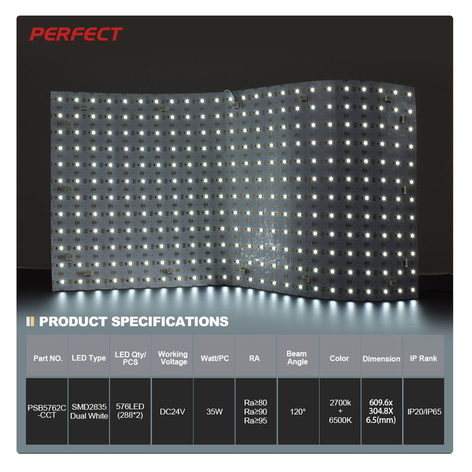 แผ่นไฟ LED แบบยืดหยุ่นได้600*300 SMD2835 DC24V 576LED สีขาวคู่35W Ra80-95 2700K + 6500K 120มุมลำแสง ° IP20/65