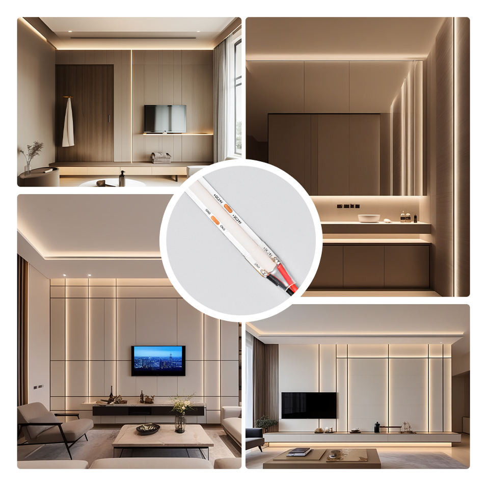 ไฟ LED แบบยืดหยุ่น SCOB ความสว่างสูง 130lm/w แรงดันไฟฟ้า DC24V ความหนา 8 มม. ไม่มีจุดไฟ แสงสีเดียว ความสว่างสูง 130lm/w แบบไม่กันน้ำ IP20 320leds/เมตร