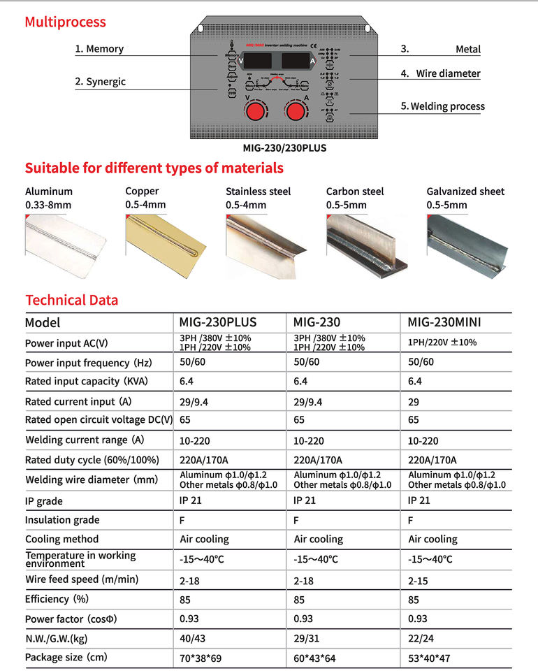เครื่องเชื่อม MIG/MAG INVERTER,เครื่องเชื่อม MIG และ FLUX-CORED ของช่างเชื่อมปี MIG-230PLUS