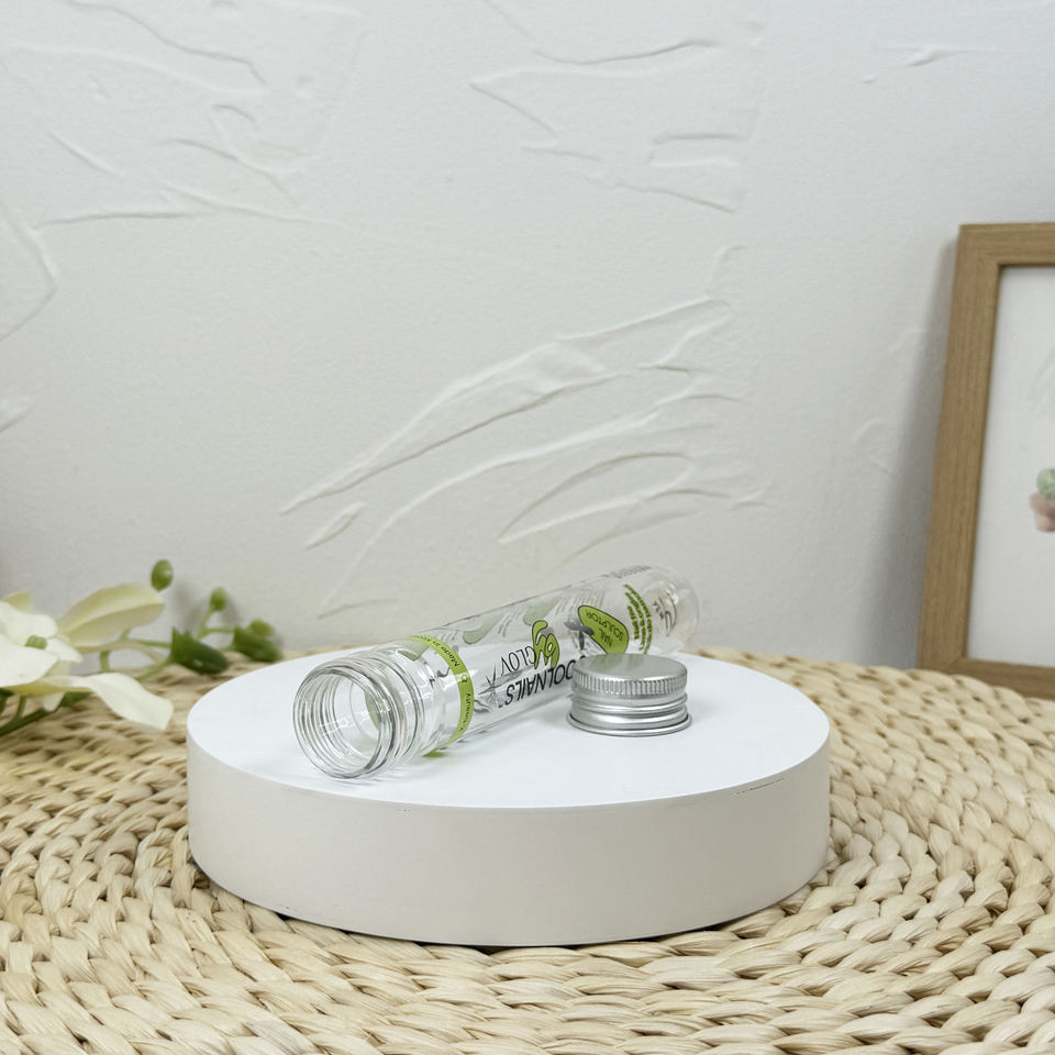 ขวด PET หลอดทดลองพลาสติกใสพร้อมฝาเกลียวอลูมิเนียมสำหรับลูกอม