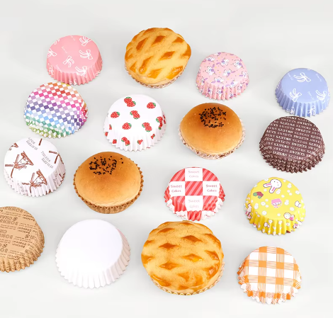 ถ้วยกระดาษรองอบรูปกลมแผ่นรองอบมัฟฟินแผ่นรองกันไขมันกระทะอบไมโครเวฟเตาอบ