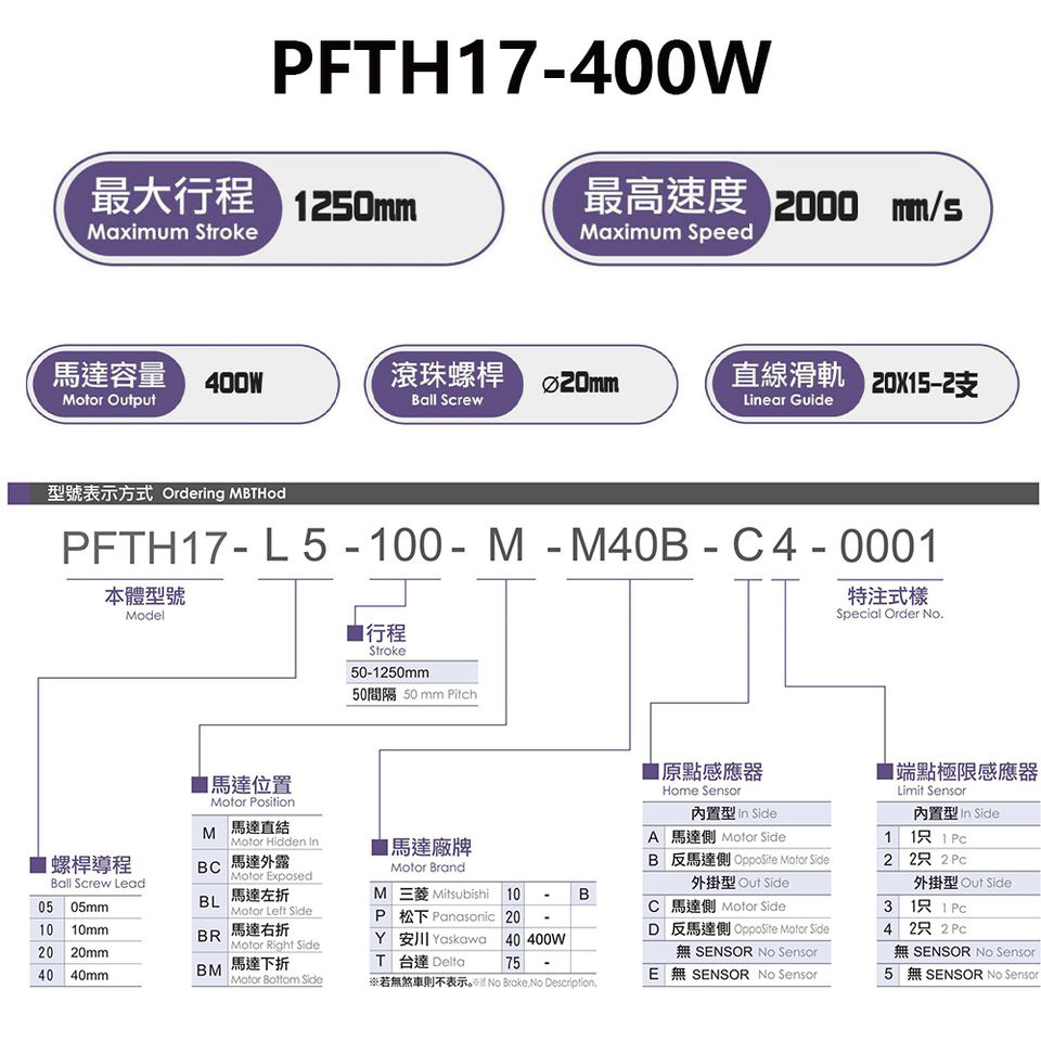 PFTH17ลูกปืนแบบแนวนอน1250มม. 400W ตัวขับแบบใช้สกรูขนาดมาตรฐานมีเสถียรภาพของมอเตอร์1แกน