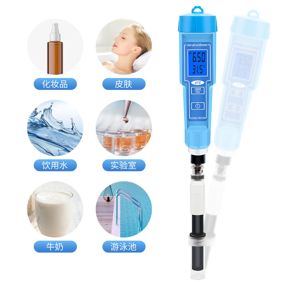 เครื่องทดสอบ PH ผิว PH-6118มิเตอร์ดิจิตอลแบบพกพาพร้อมจอแสดงผล LCD สำหรับวัดอุณหภูมิผิวและการวัดความเป็นกรด
