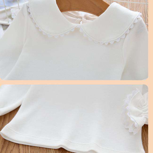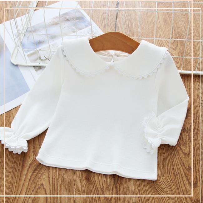 เสื้อเด็กผู้หญิงสีขาวล้วน รุ่น PHB 50354 ดีไซน์เรียบง่าย คอปกปีเตอร์แพน