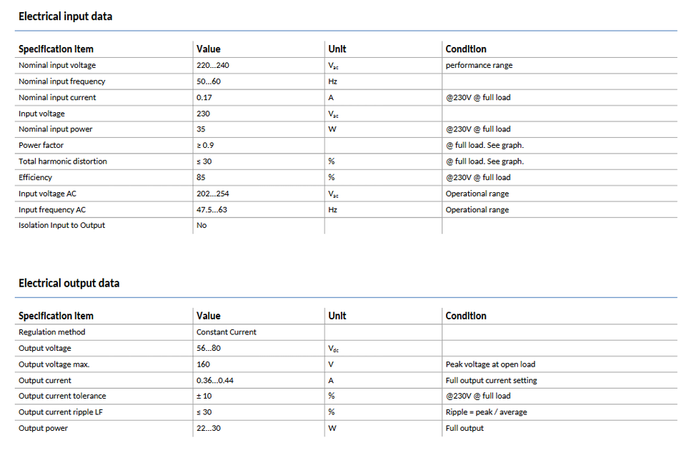 หมายเลขรุ่น:CertaDrive 30W 0.4A 72V 230V