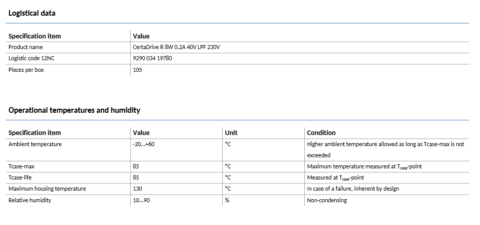CertaDrive R 8W 0.2A 40V LPF 230Vหมายเลขรุ่น