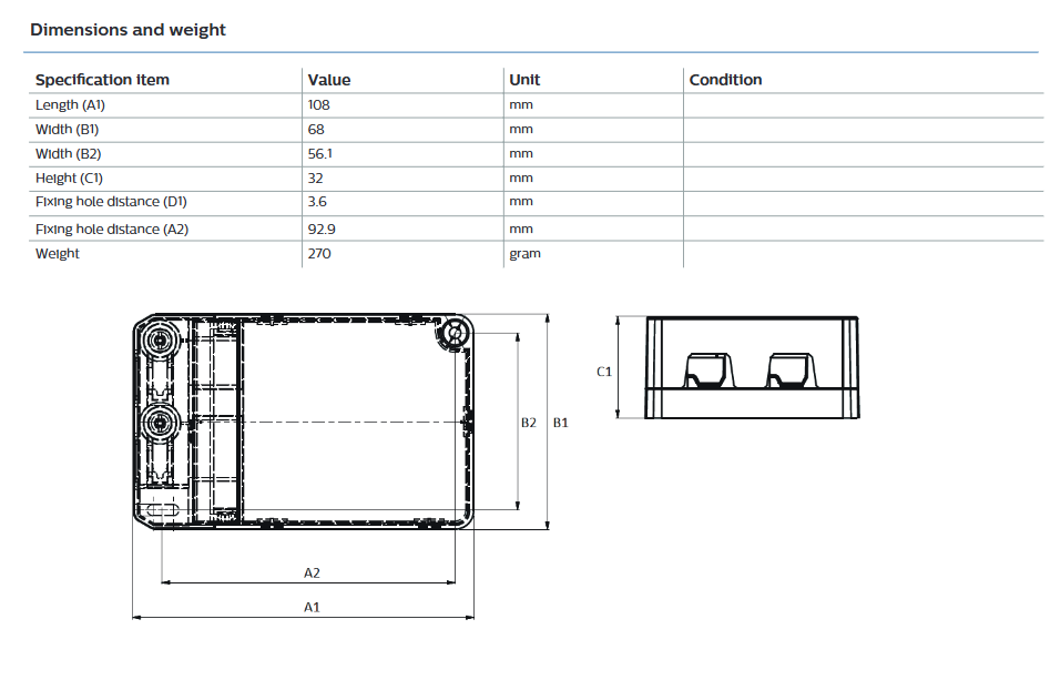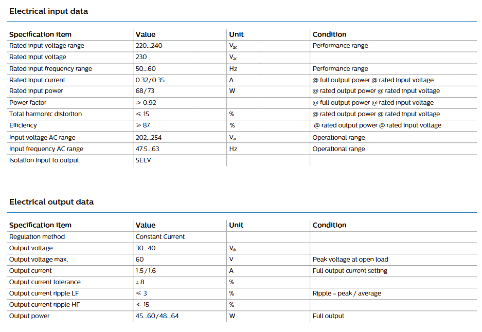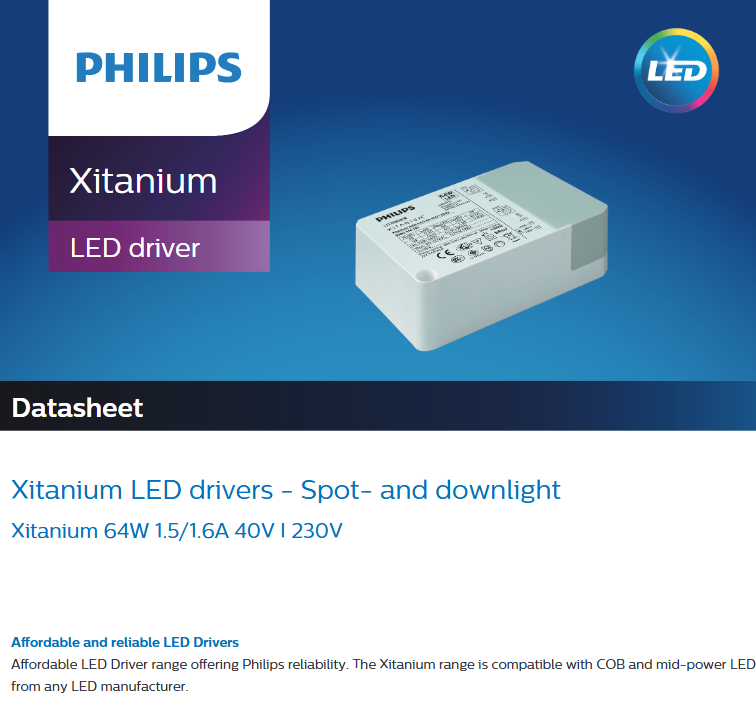 ไดรเวอร์ LED กำลังสูง PHILIPS Xitanium 64W 1.5/1.6A 40V I 230V สำหรับไฟ LED ตัวเรือนพลาสติก