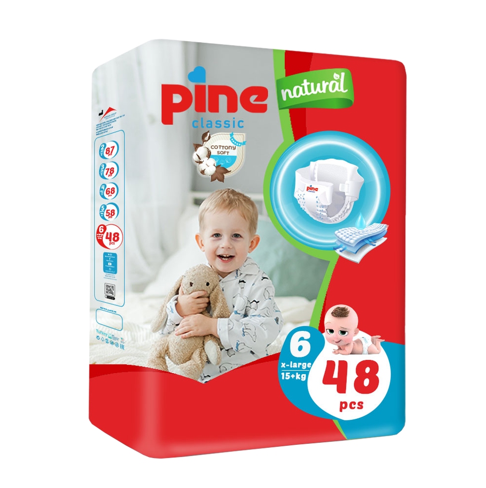 ผ้าอ้อมเด็กไพน์คลาสสิคคอตตอนขนาดใหญ่พิเศษ 48 ชิ้นต่อแพ็ค ระบายอากาศได้ดี ป้องกันผื่น ผ้าอ้อมแบบ 3 มิติ ป้องกันการรั่วซึม ซึมซับได้ดีเยี่ยม