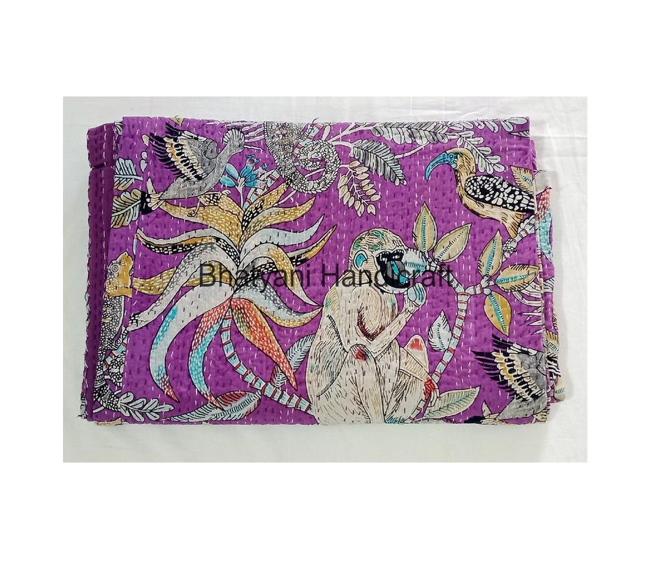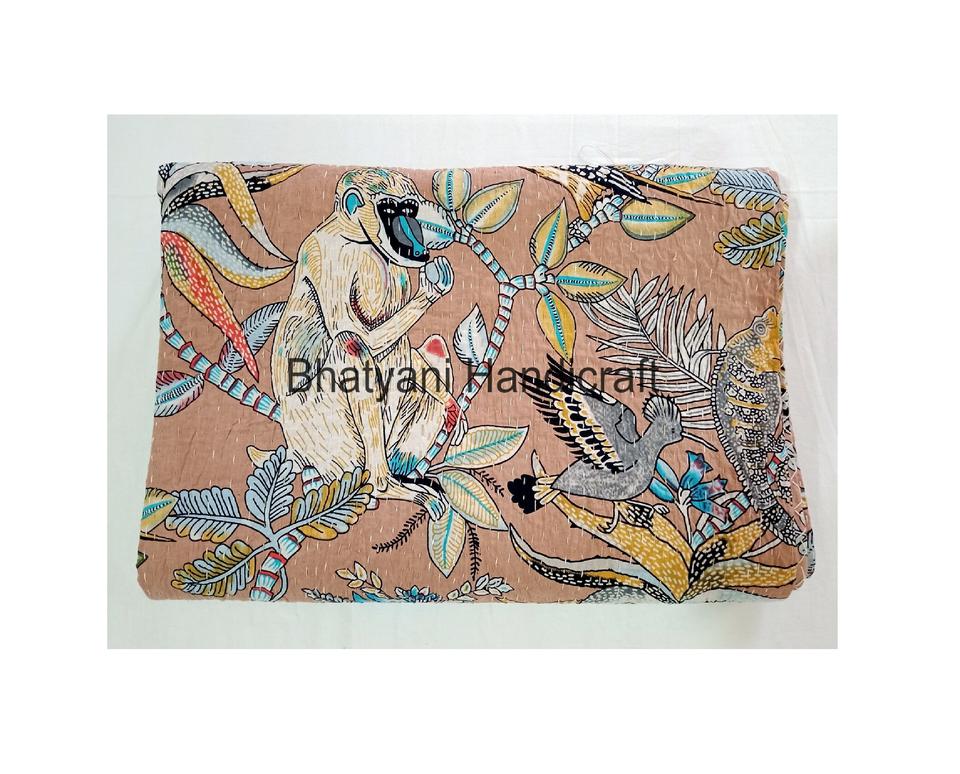 ผ้าห่มทำด้วยมือสีชมพูขนาดคู่ผ้าคลุมเตียงผ้าฝ้ายอินเดียพิมพ์ลายลิงออร์แกนิคผ้าห่มตกแต่งนุ่มสำหรับใช้ในบ้านโรงแรม