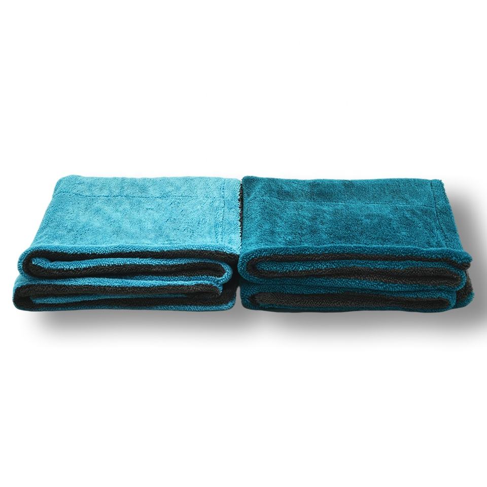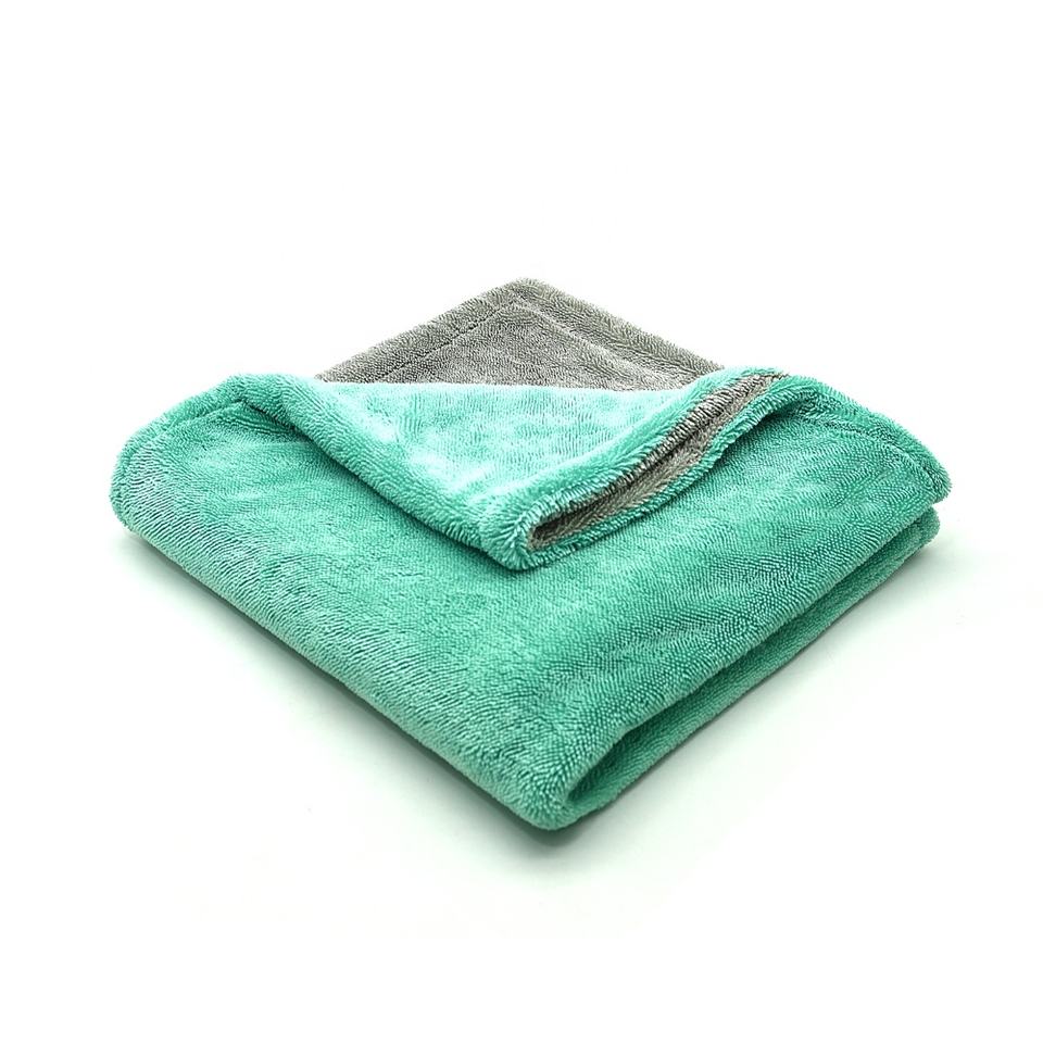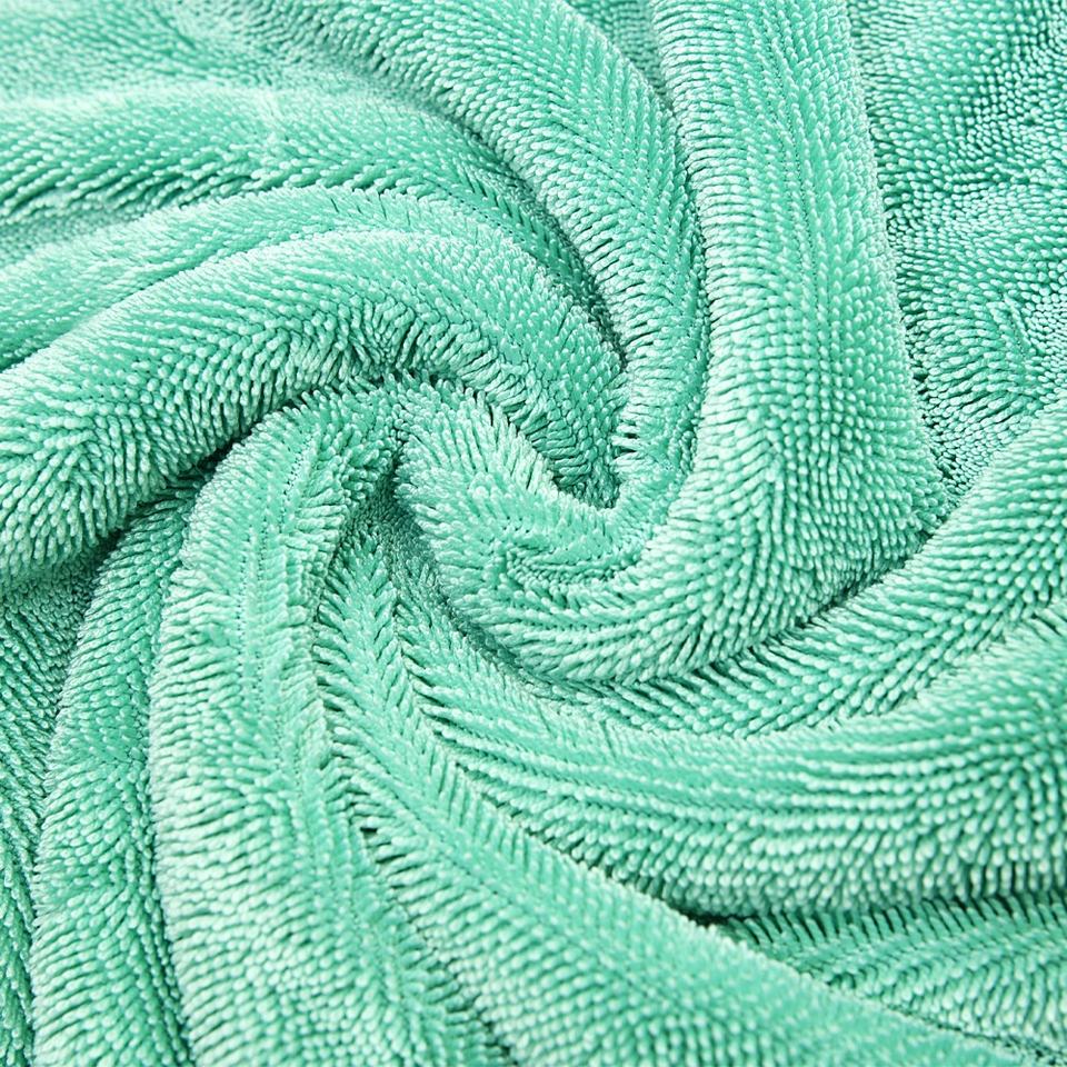 ผ้าขนหนูไมโครไฟเบอร์มีห่วงบิดสำหรับเช็ดรถรายละเอียดผ้าเช็ดตัวผืนใหญ่สำหรับอบแห้งสองชั้นดูดซับได้ดีไม่เป็นขุย