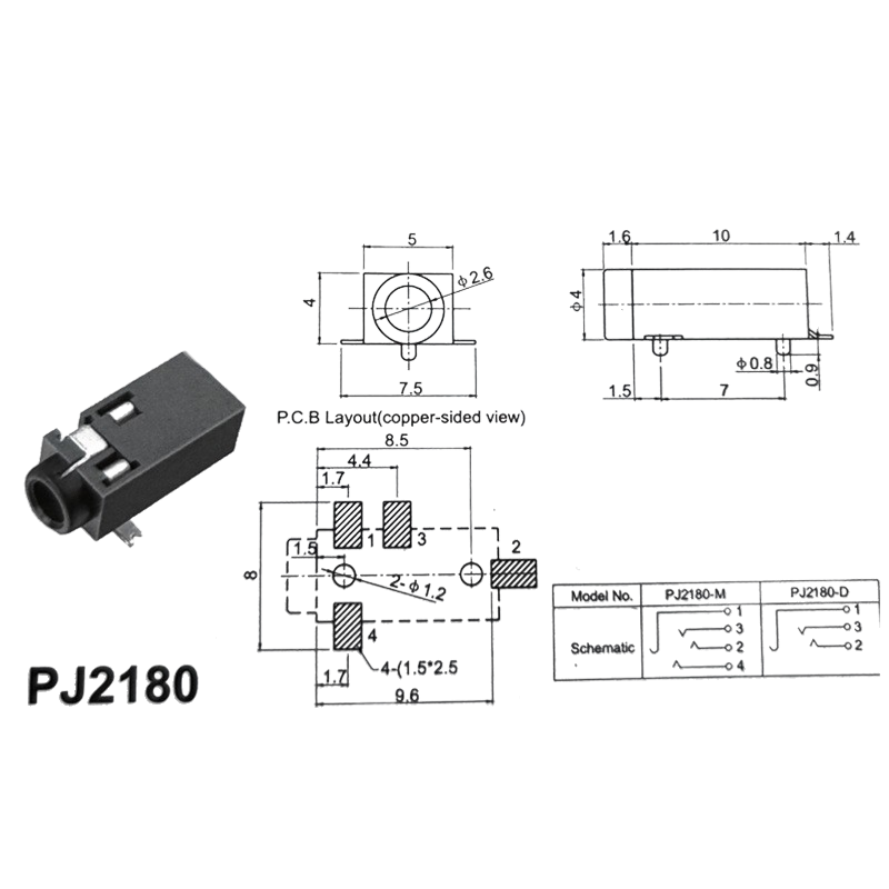 ช่องเสียบแจ็คเสียง PJ-218 ขนาด 2.5 มม., แบบ 4 ขา ติดตั้งแบบ SMT สำหรับของเล่น/คอมพิวเตอร์, ขั้วต่อแบบติดตั้งบนพื้นผิวสำหรับอุปกรณ์ตัวรับ