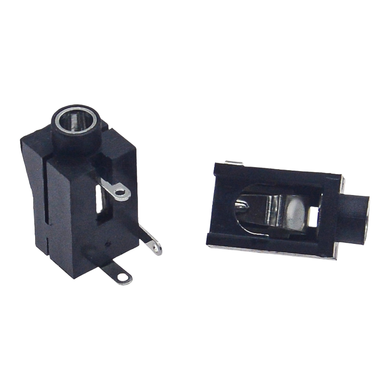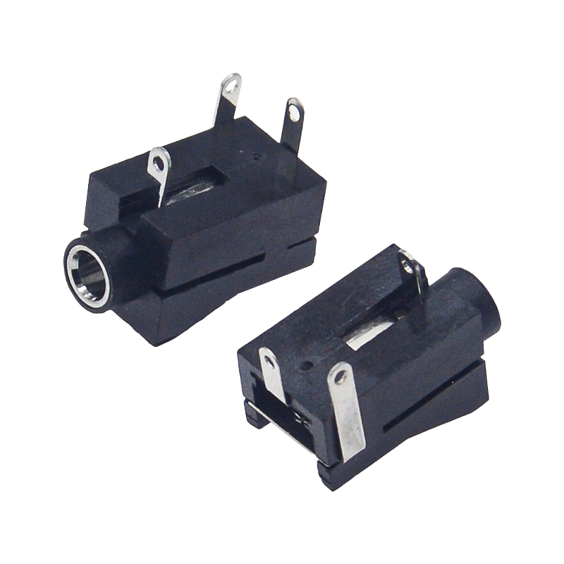 PJ-302B ช่องเสียบแจ็คเสียงสเตอริโอขนาด 3.5 มม., แบบติดตั้ง DIP แนวตั้ง 3 ขา, ตัวเรือนพลาสติกพร้อมหน้าสัมผัสทองเหลืองภายใน