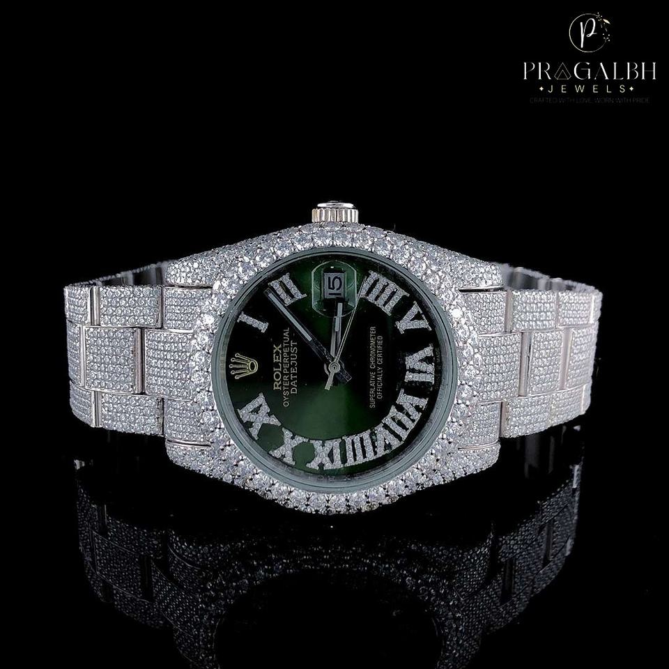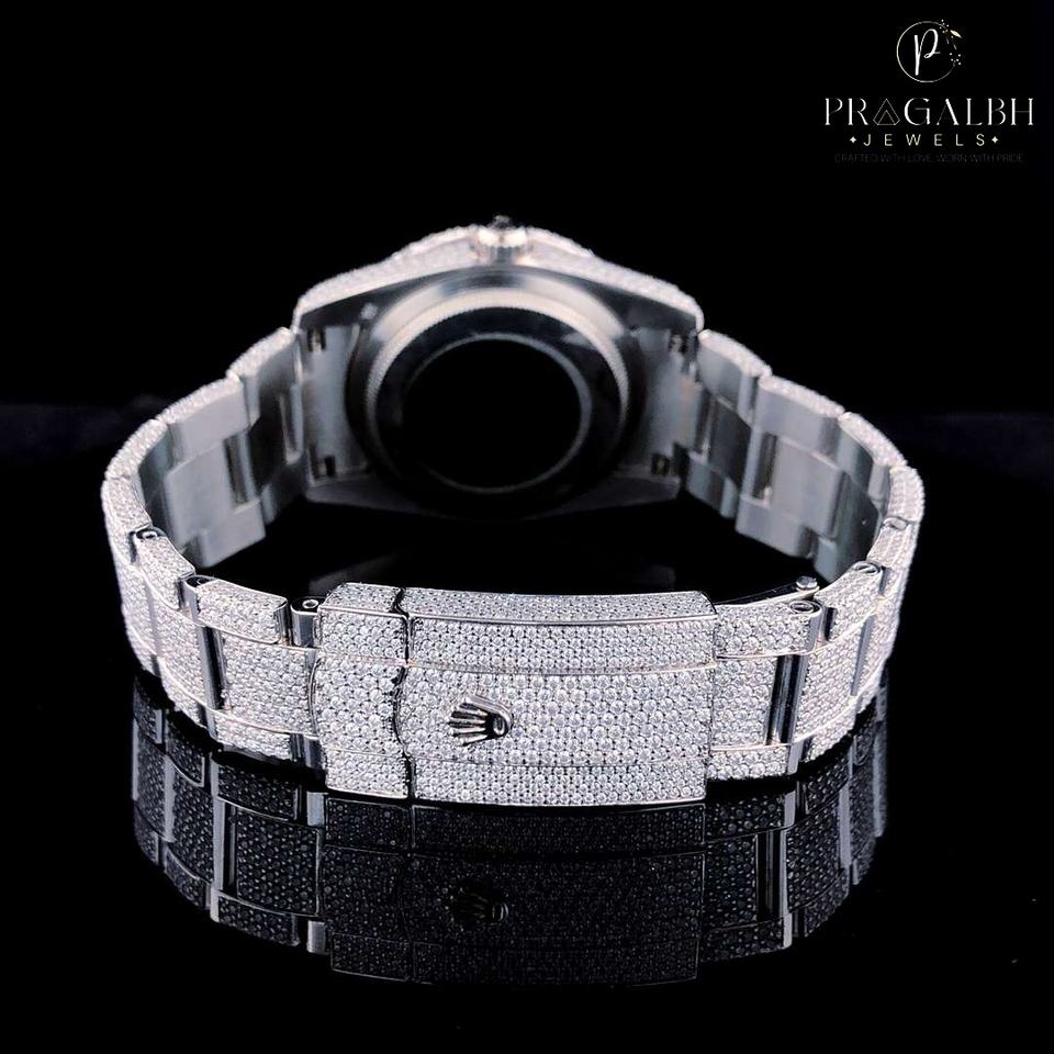 PJ statement นาฬิกาเพชรมอยส์ซอไนท์สำหรับผู้ชายหน้าปัดใหญ่แบบอัตโนมัติสไตล์ฮิปฮอปโชว์หน้าอกทำจากสแตนเลส